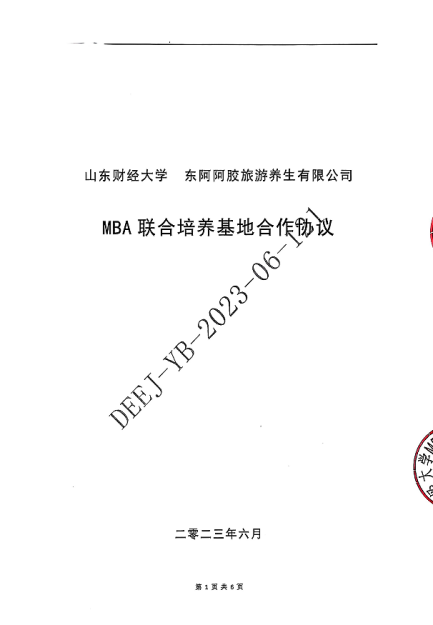 山东财经大学 东阿阿胶旅游养生有限公司 MBA 联合培养基地合作协议