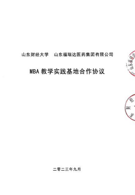 山东财经大学 山东福瑞达医药集团有限公司 MBA 教学实践基地合作协议