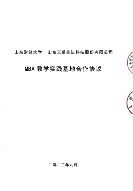 山东财经大学 山东天岳先进科技股份有限公司 MBA 教学实践基地合作协议