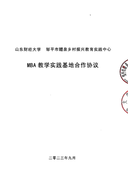 山东财经大学 邹平市醴泉乡村振兴教育实践中心 MBA 教学实践基地合作协议