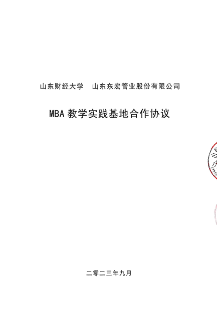 山东财经大学 山东东宏管业股份有限公司 MBA 教学实践基地合作协议